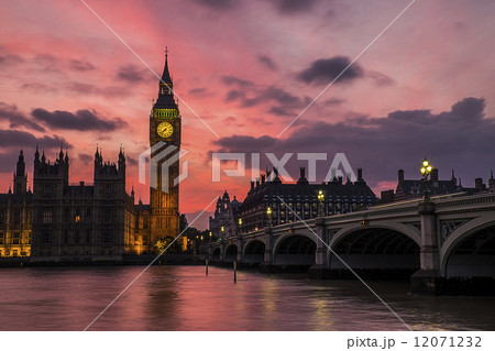 ロンドン 夕暮れのテムズ川とウェストミンスター宮殿