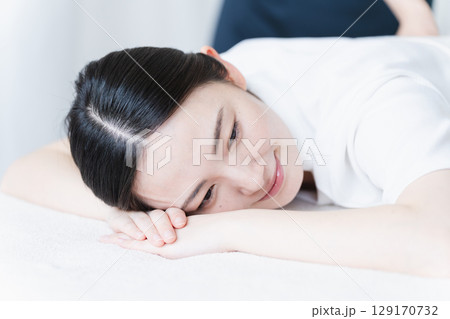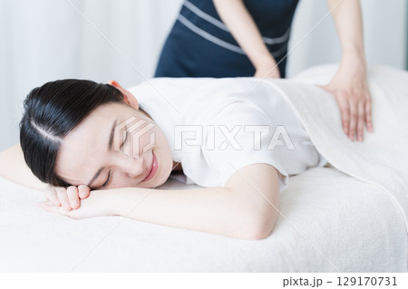 セラピストにマッサージを受ける若い女性 ビューティイメージ