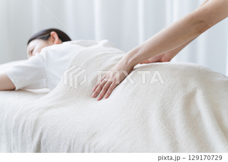 整体師のマッサージを受ける若い女性 ビューティイメージ
