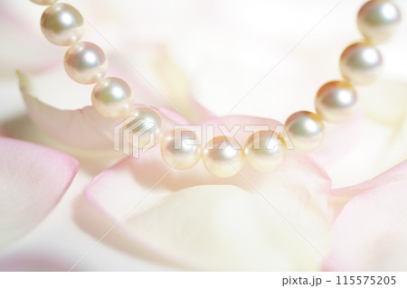 バラの花びらの上のパールネックレス 本真珠ネックレス
