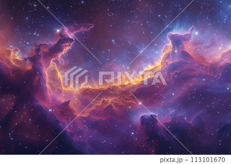 星々の誕生と終焉を描く宇宙絵巻:無限の宇宙の鮮やかなアートワーク AI生成 100