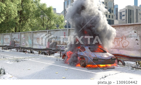 爆発が起きた街並み風景,Generative AI AI画像