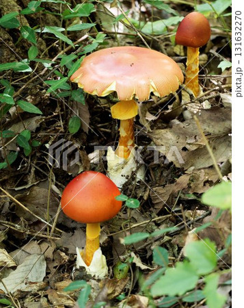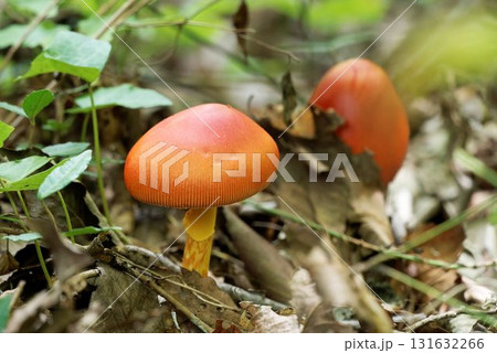 夏の森の赤いタマゴタケ
