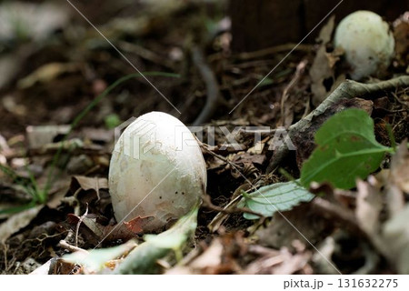 外皮膜(つぼ)に包まれたタマゴタケの幼菌