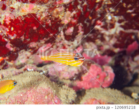ヒリゾ浜の美しいオオスジイシモチ(テンジクダイ科)。 静岡県伊豆半島賀茂郡南伊豆町中木から渡し船で