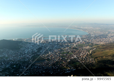 南アフリカ ケープタウン テーブル・マウンテンの中腹から望むテーブル湾岸の街並み
