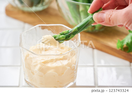 ブロッコリーにマヨネーズをつける