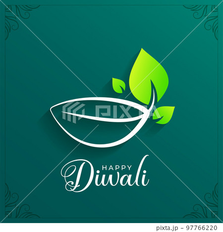 elegant green eco diwali wishes card with creative diya design