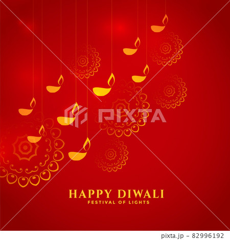 happy diwali festive red background with golden star and lantern