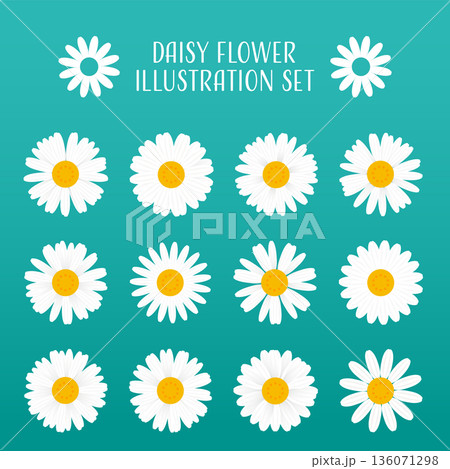 白色デイジーの花のベクターイラストレーションセット。