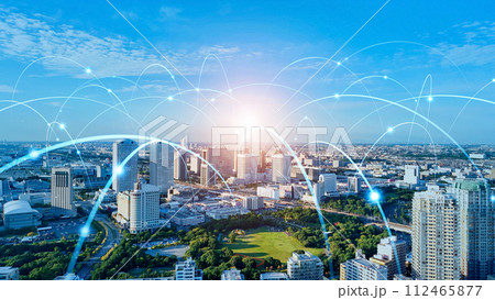 現代都市とデジタルネットワーク 広告・バナー向けコピースペースありビジュアル