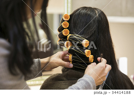 デジタルパーマをかける女性 美容室イメージ写真素材