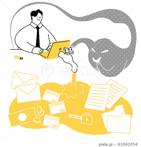 不正アクセスにより情報が漏洩しているベクターイラスト。