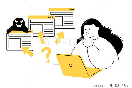 インターネットで嘘の買い込みがあるか判断するベクターイラスト