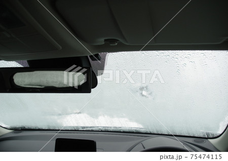 自動車のフロントガラスについた霜をデフロスターで溶かす