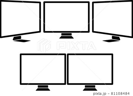 マルチ液晶ディスプレイとデュアルモニター画面アイコン素材【PC画面部分は透過】