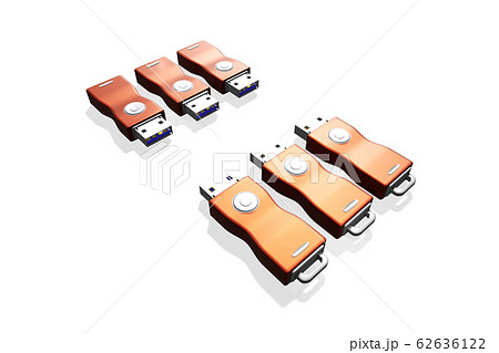 並べたUSBメモリ(3DCG:白バック)