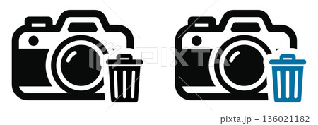 ゴミ箱付きカメラアイコン|写真削除・画像消去を表すUI素材
