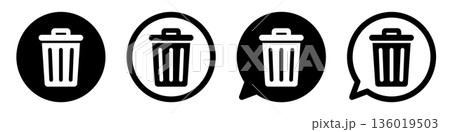 削除のゴミ箱アイコンセット 消去・削除ボタン モノクロUIデザイン素材