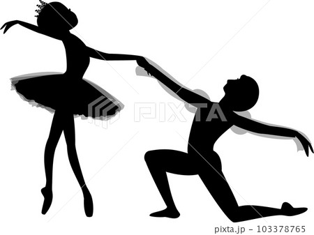 バレエ パ・ド・ドゥ2人で踊るバレリーナの黒色のシルエット