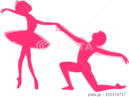 バレエ パ・ド・ドゥ2人で踊るバレリーナの濃いピンクのシルエット