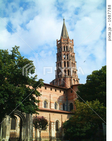【フランス・トゥールーズ】サン・セルナンバジリカ聖堂と樹木・夏
