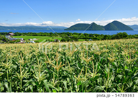 北海道洞爺湖町で洞爺湖湖畔のトウキビ畑の夏の風景を撮影