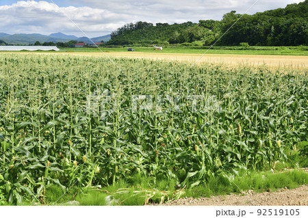北海道洞爺湖町でトウモロコシ畑の夏の風景を撮影