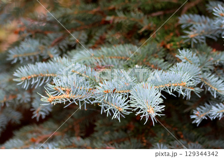 コロラドトウヒ(マツ科・トウヒ属)常緑針葉樹と青空