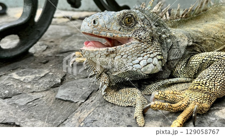 (イグアナ公園)で撮影したイグアナの顔の超ズームアップ(グアヤキル)