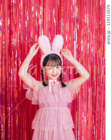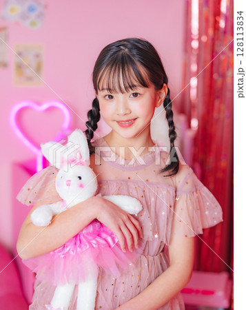 ピンクの部屋で撮影した女の子のポートレート