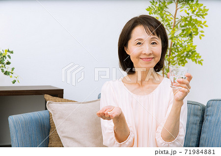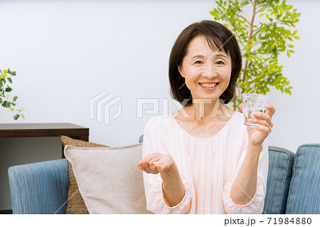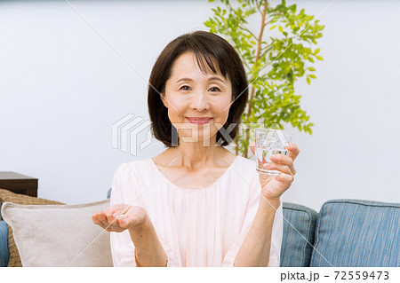 サプリメントを飲む女性