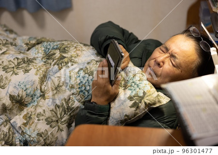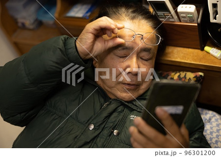 スマホを見る高齢者