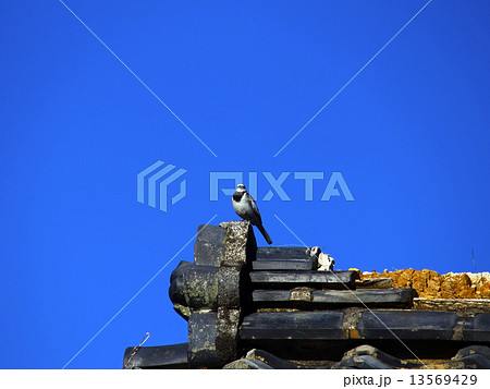 「うまく撮ってね」(屋根瓦の上にとまってポーズするセキレイ)