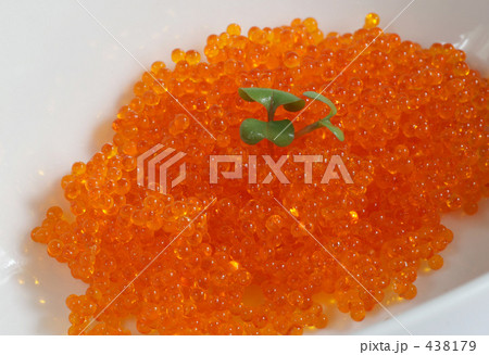 いくらとトビッコのガラス小皿盛り、魚卵、白バック