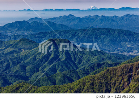 谷川岳・トマの耳から見る上越国境稜線と浅間山・富士山遠望