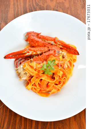 注意)お皿に若干の汚れ・レタッチ痕が残る場合があります。渡り蟹(ワタリガニ)のトマトクリームパスタ。