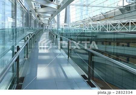 トラス構造の高い天井 高い吹き抜け天井のビルのエントランス