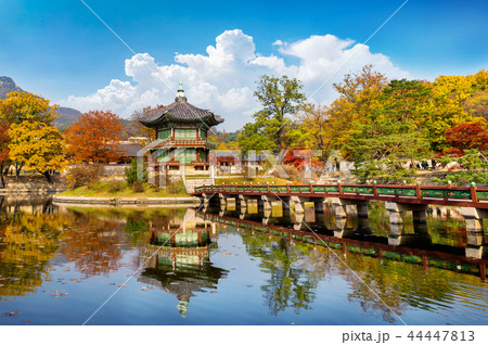 Gyeongbukgung and Maple tree in autumn in Korea.
