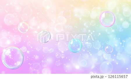 Soft pastel background with floating iridescent soap bubbles and glowing reflections ideal for dreamy, minimal designs with space for text or branding.