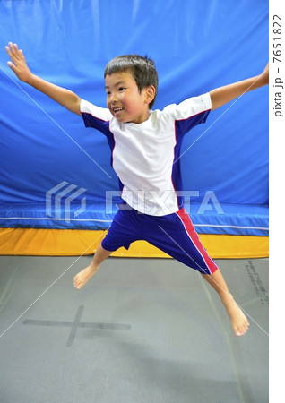 トランポリンで遊ぶ子供(7歳児/男の子)