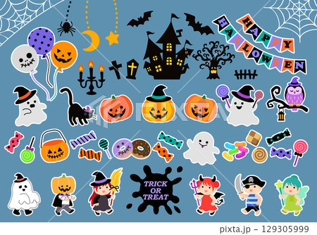 かわいいハロウィンのお化けたちのイラスト素材セット