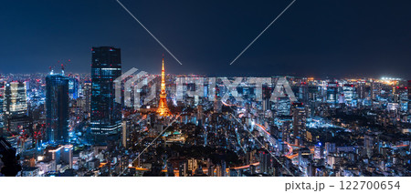 東京の夜景とライトアップされた麻布台ヒルズと東京タワー