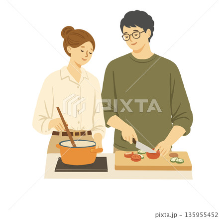 情侶在廚房一起做飯