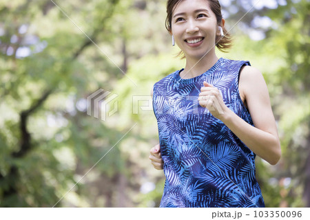 屋外でランニングをする若い女性