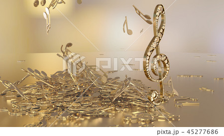 3D rendering of a musical treble clef and falling