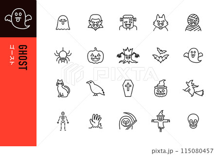 シンプルなゴーストの線画ベクターアイコンセット20点