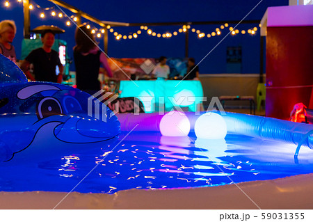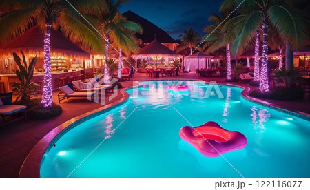 夏の夜を楽しむリゾート感溢れるプールパーティースペース【Generative AI】