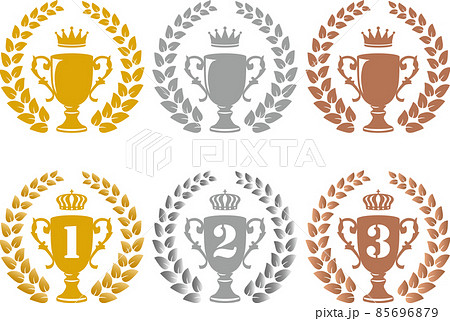金銀銅のトロフィーと月桂樹のイラスト。ランキングアイコン。