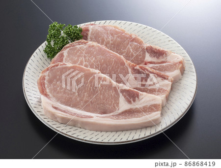 ポークソテー用、トンカツ用に豚ロース肉【白背景】